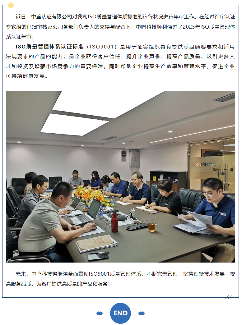 中鳴科技通過(guò)2023年ISO質(zhì)量管理體系認(rèn)證年審