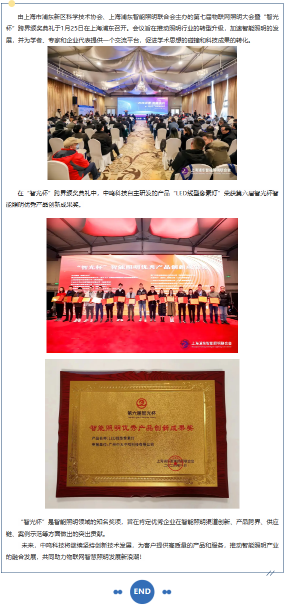 中鳴科技榮獲“智光杯”智能照明優(yōu)秀產(chǎn)品創(chuàng)新成果獎(jiǎng)!