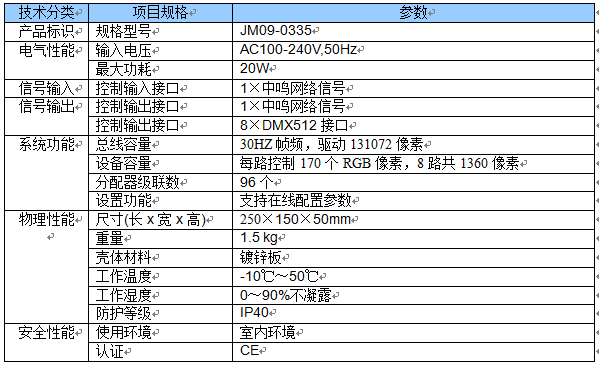 l? 8路標(biāo)準(zhǔn)DMX512信號輸出,專用5芯拔插式輸出接口;