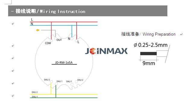 1、One relay output controlled by DALI bus.